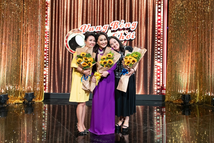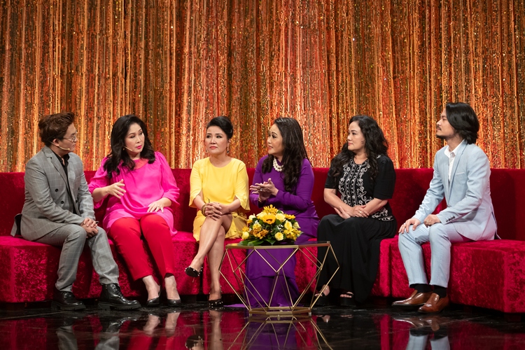 Ba chị em Thanh Hằng, Ngân Quỳnh, Thanh Ngọc cùng MC Đại Nghĩa, NSND Hồng Vân, đạo diễn Hoàng Nhật Nam