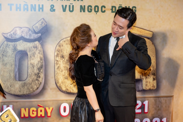 Cô có mối quan hệ thân thiết với Trấn Thành nên không thể bỏ lỡ sự kiện quan trọng do anh tổ chức đồng thời chúc mừng nam MC lần đầu thử sức vai trò sản xuất, đạo diễn phim. Hai người ôm chầm lấy nhau và cười nói tíu tít tại họp báo.