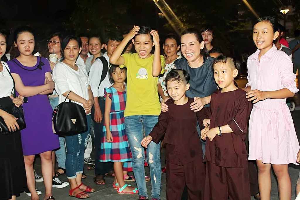 Vì bận rộn với lịch diễn dày đặc nên đến tối 1/6, Phi Nhung mới có thời gian ở bên cạnh các con. Thiêng Ngân (áo hồng), Tuyết Nhung và các bé ở trong chùa đã có những giây phút vui vẻ bên mẹ nuôi. Đặc biệt, khi nữ ca sĩ dẫn các con ra “đại náo” phố đi bộ Nguyễn Huệ, nhiều khán giả hâm mộ có mặt tại đây đã hòa cùng mẹ con cô để cùng tham gia những trò chơi như kéo co, chạy rượt, nhảy lò cò… Sự xuất hiện của Phi Nhung và các con nuôi đã khiến phố đi bộ trở nên náo động hẳn, nhất là khi khán giả đã vây tròn khu vực chơi đùa của mẹ con Phi Nhung, cùng chụp hình lưu lại những kỷ niệm dễ thương.